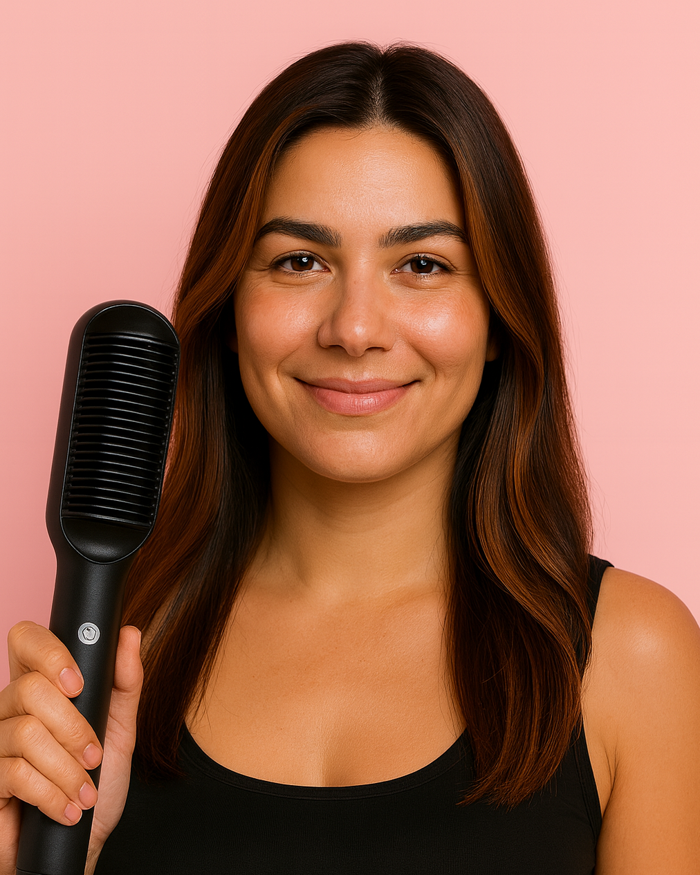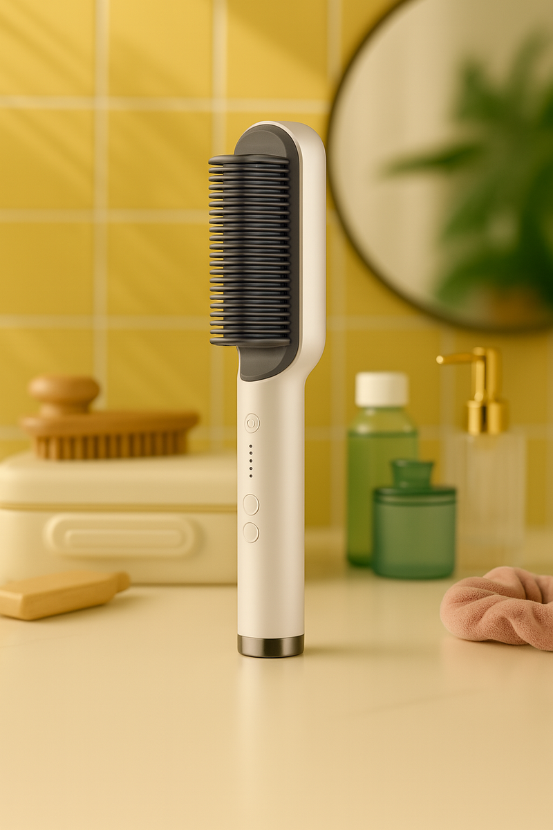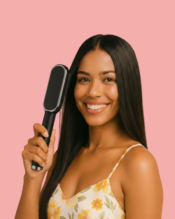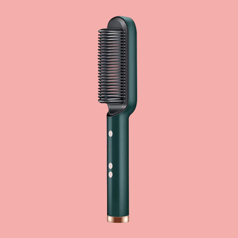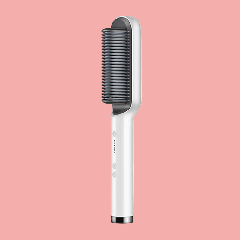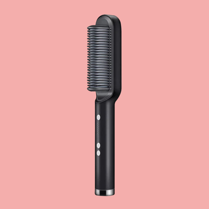 Designed to simplify your routine. This straightening brush glides through hair effortlessly, releasing negative ions for frizz control, natural shine, and long-lasting sleekness without flattening your volume.